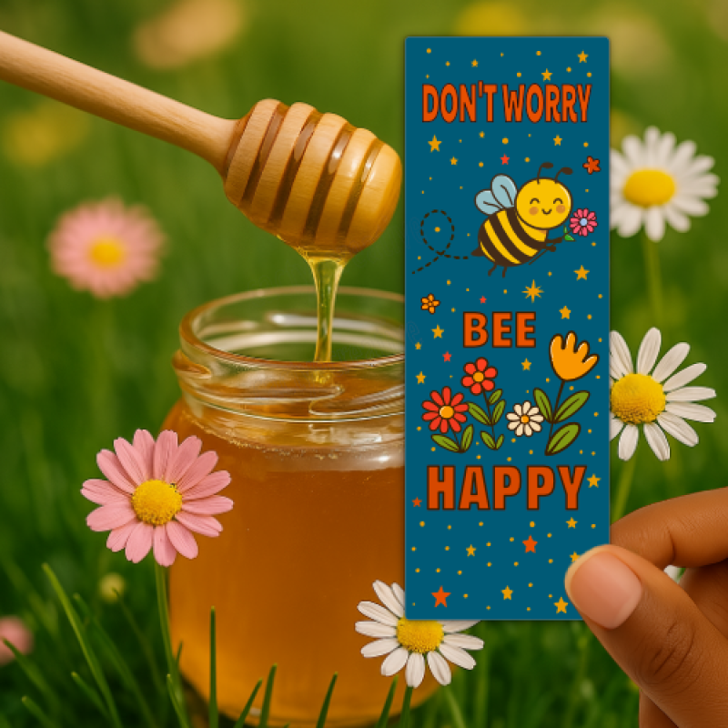 This uplifting bookmark carries the heartwarming message: "Don't Worry, Bee Happy" —a perfect pick-me-up for anyone who loves reading with a side of sunshine!