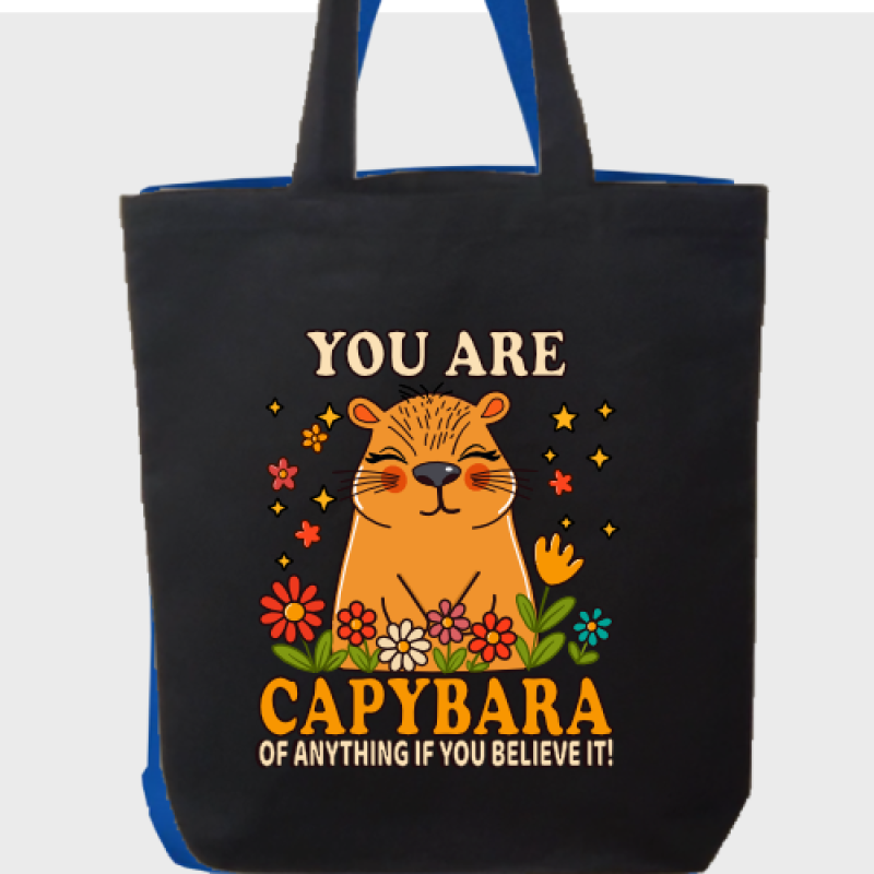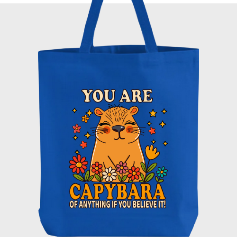Carry confidence wherever you go with this cheerful capybara-inspired tote! Featuring a sweet capybara surrounded by bright blooms and good vibes, this bag delivers a playful reminder that you are capybara of anything—yes, anything—if you believe it.