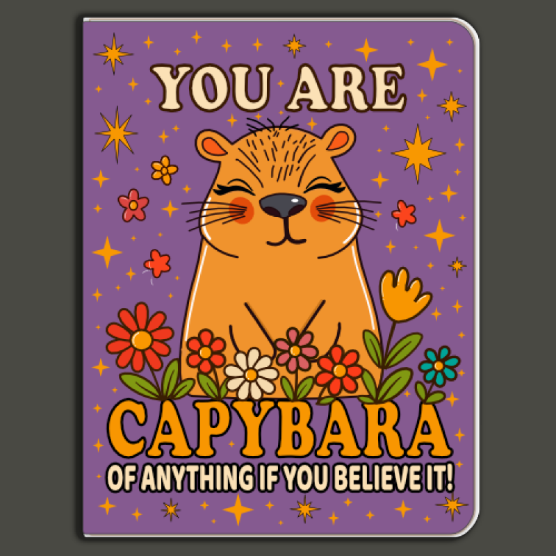 Believe in yourself—capybara style! This charming “You Are Capybara of Anything If You Believe It” mini notebook stars a delightfully sweet capybara surrounded by playful flowers, twinkling stars, and fun embellishments. It’s a heartfelt reminder that confidence (and capybara energy) can take you anywhere.