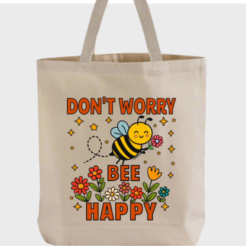 Carry positivity wherever you go with this adorable Bumble Bee holding a delicate flower! Featuring the uplifting message, "Don't Worry, Bee Happy!", this tote bag is a cheerful reminder to embrace joy, stay optimistic, and take life's little moments in stride.