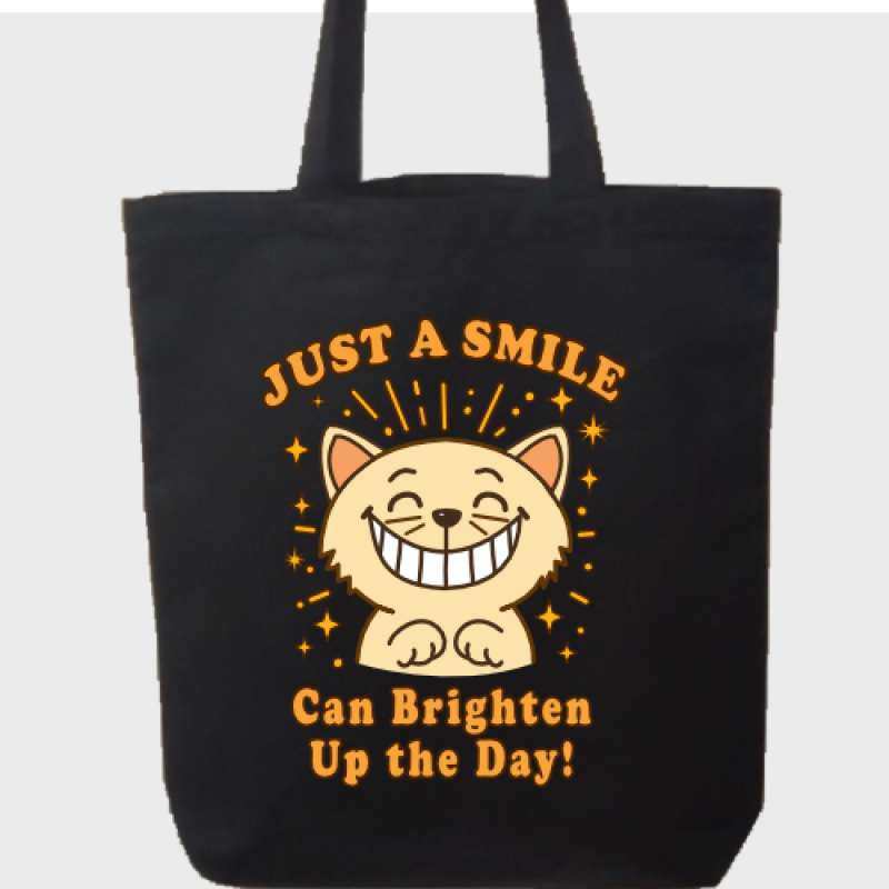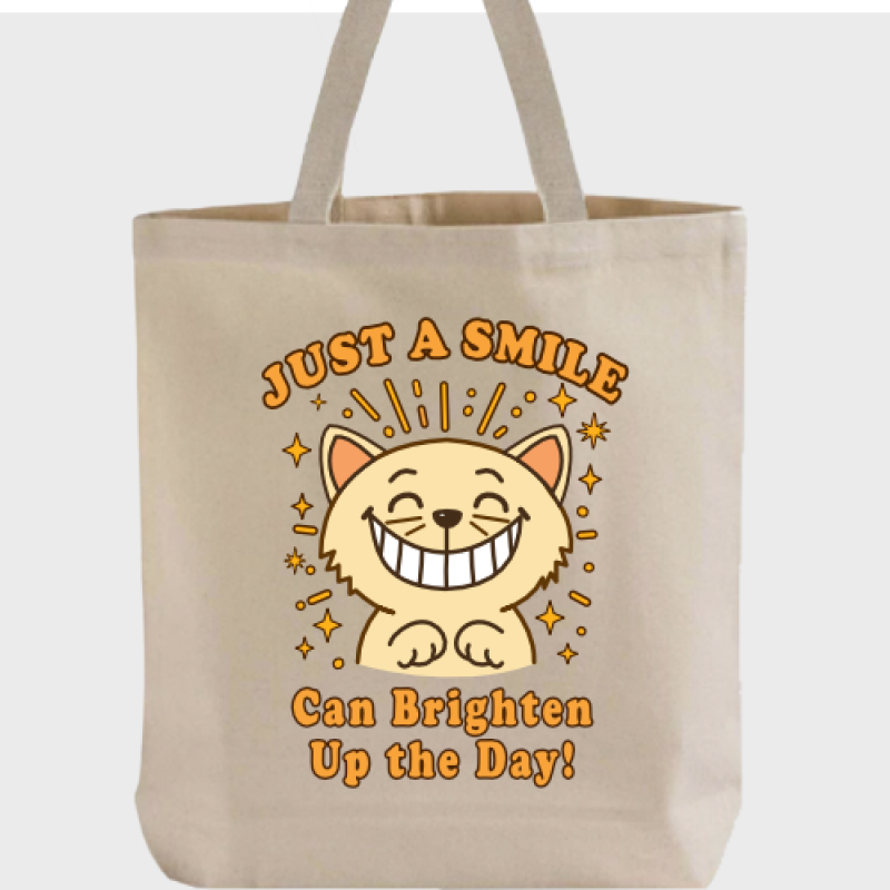 Just A Smile Can Brighten Up The Day – Smiling Cat Tote Bag  Just A Smile Can Brighten Up The Day – Smiling Cat Tote Bag